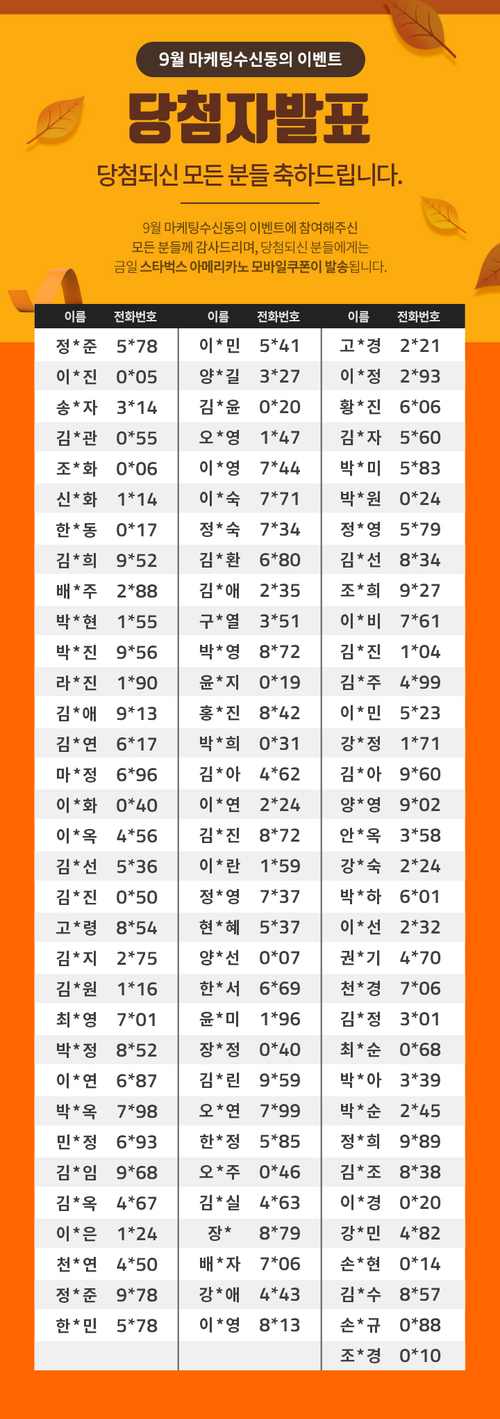 [당첨자발표] 9월 마케팅 수신동의 이벤트 당첨자 발표